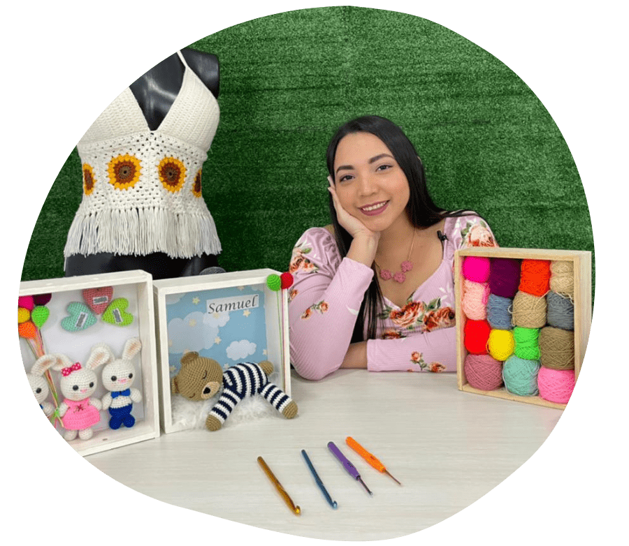 Profesional en recursos industriales y emprendedora que convirtió sus manos y el crochet en la oportunidad de construir un futuro para su hija en un país extranjero y cuyo arte hoy en día es su principal fuente de ingresos.